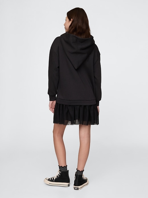 - Soft cotton-blend fleece sweatshirt and tulle skirt dress.